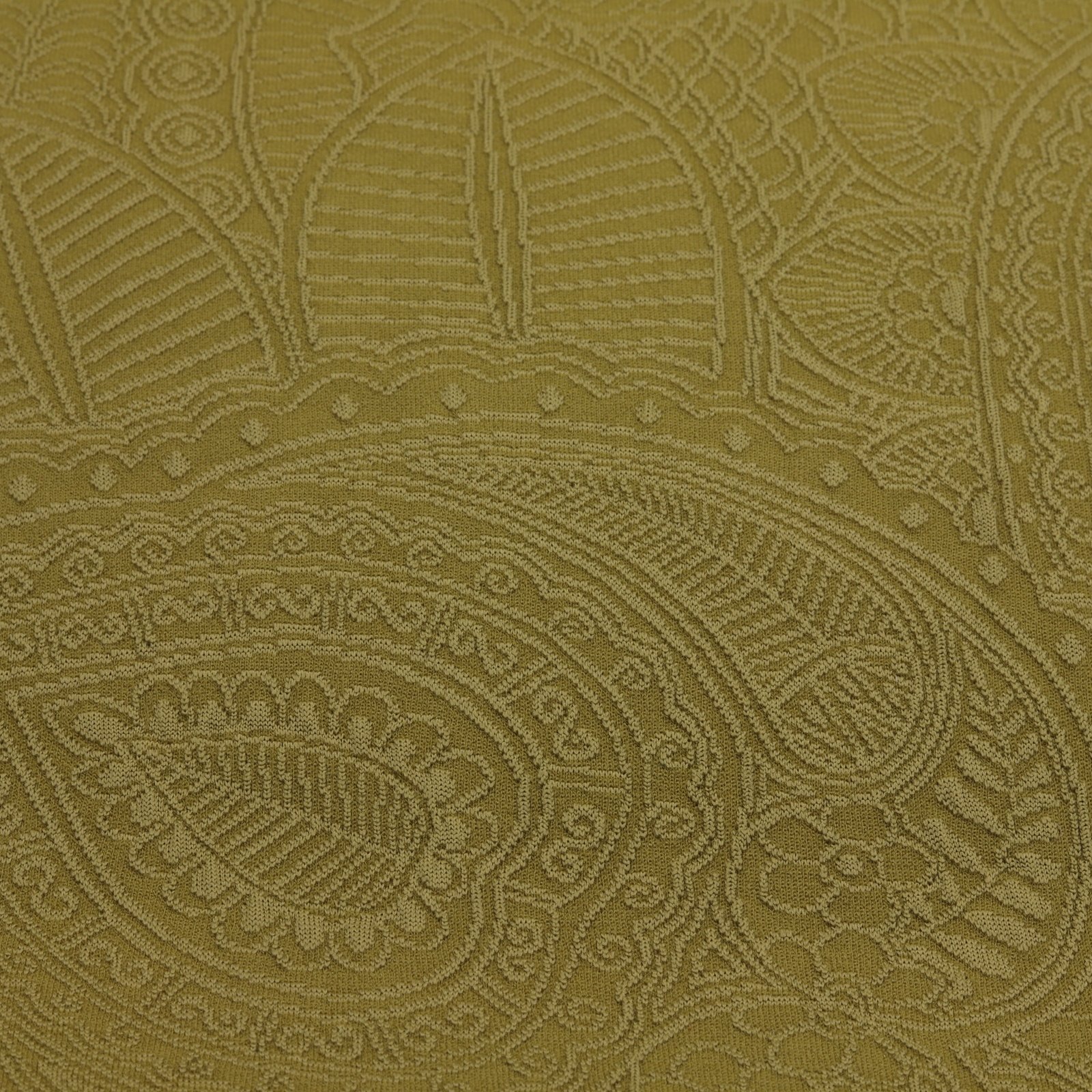 Tissu jacquard vert extensible. Ce jacquard raffiné présente un motif riche et texturé avec un bel effet de relief. Sa structure souple et extensible offre un excellent confort tout en conservant une tenue élégante. Idéal pour la confection de lingerie premium, de pièces mode sophistiquées et de créations à forte valeur esthétique.