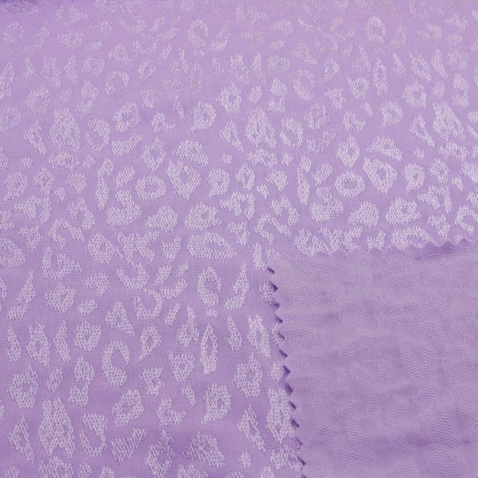 Tissu jacquard violet extensible léopard, au relief discret et à l’aspect raffiné. Ce jacquard stretch offre une bonne élasticité et un toucher souple, idéal pour la confection de maillots de bain élégants, de lingerie moderne et de pièces mode confortables.