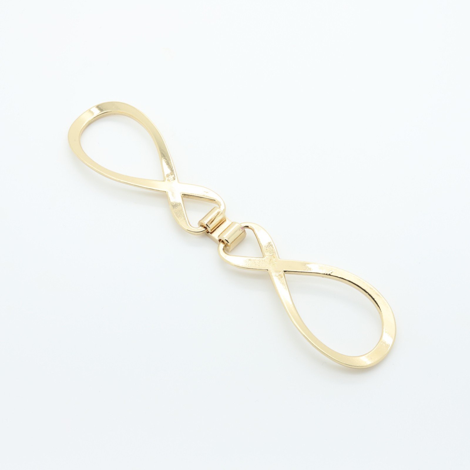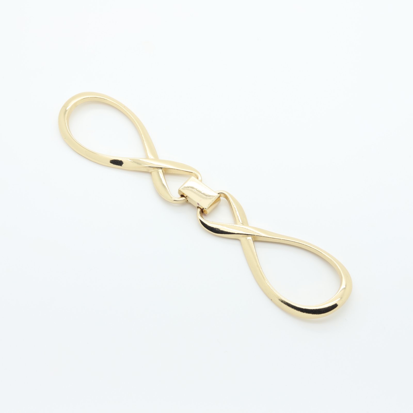 Este conector de bikini Infinity en forma de 8 en metal chapado en oro es un elemento de ensamblaje decorativo y funcional. Añade un acabado elegante y duradero a las creaciones de trajes de baño expuestas al agua y al sol.