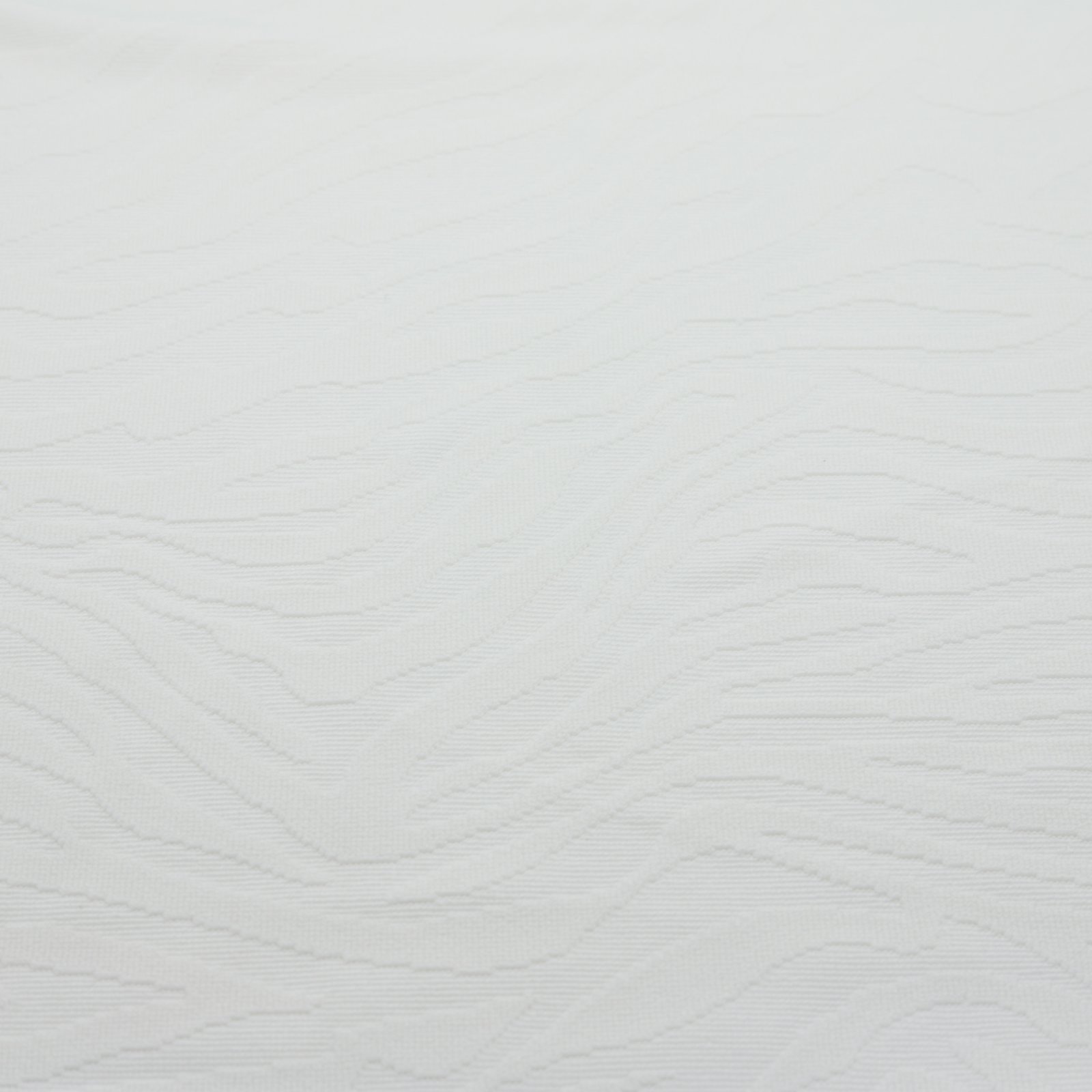 Tissu en jacquard extensible texturé blanc à motif zèbre, souple et résistant. Ce tissu jacquard extensible à l’aspect structuré est idéal pour la confection de maillots de bain, vêtements techniques et créations mode contemporaines.