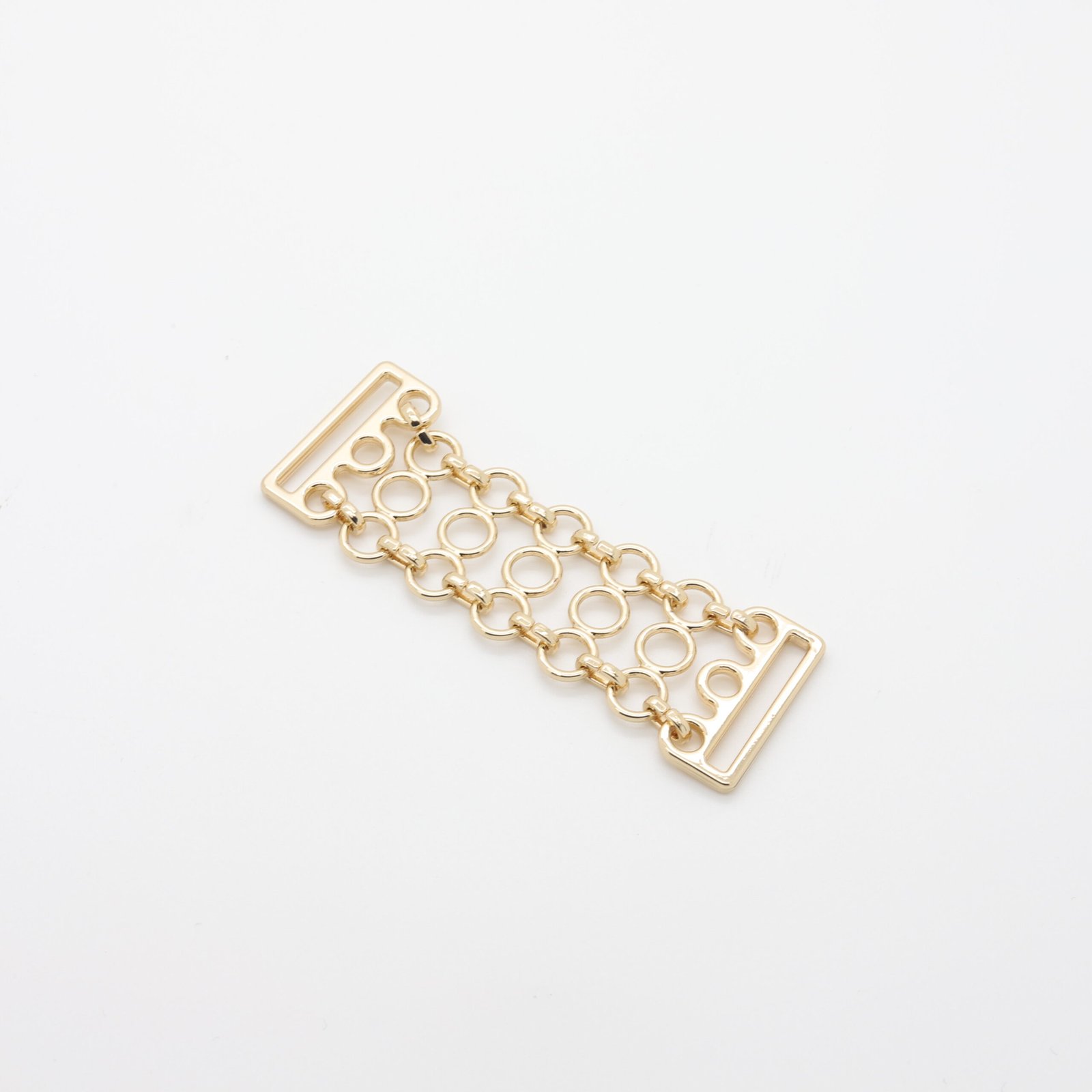 Questa catena decorativa in metallo placcato oro è stata progettata per valorizzare le creazioni tessili e di costumi da bagno di alta gamma. Aggiunge una finitura gioiello elegante e contemporanea a costumi da bagno, bikini e capi d'abbigliamento di alta qualità, fornendo al contempo un collegamento forte e duraturo.