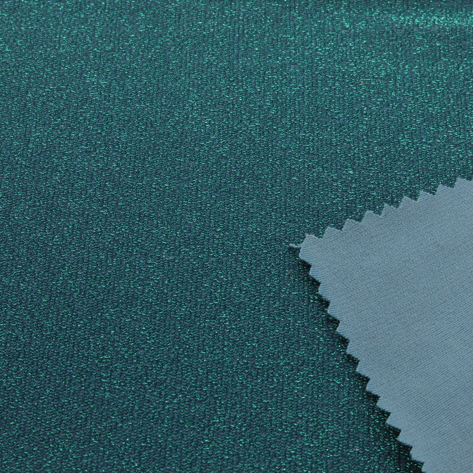 Tissu lurex vert métallisé extensible, à base de polyamide recyclé. Ce tissu stretch au fini scintillant offre un rendu lumineux et contemporain, combiné à une bonne élasticité et un confort optimal. Idéal pour la confection de maillots de bain premium, de vêtements de scène ou de pièces mode à fort impact visuel.