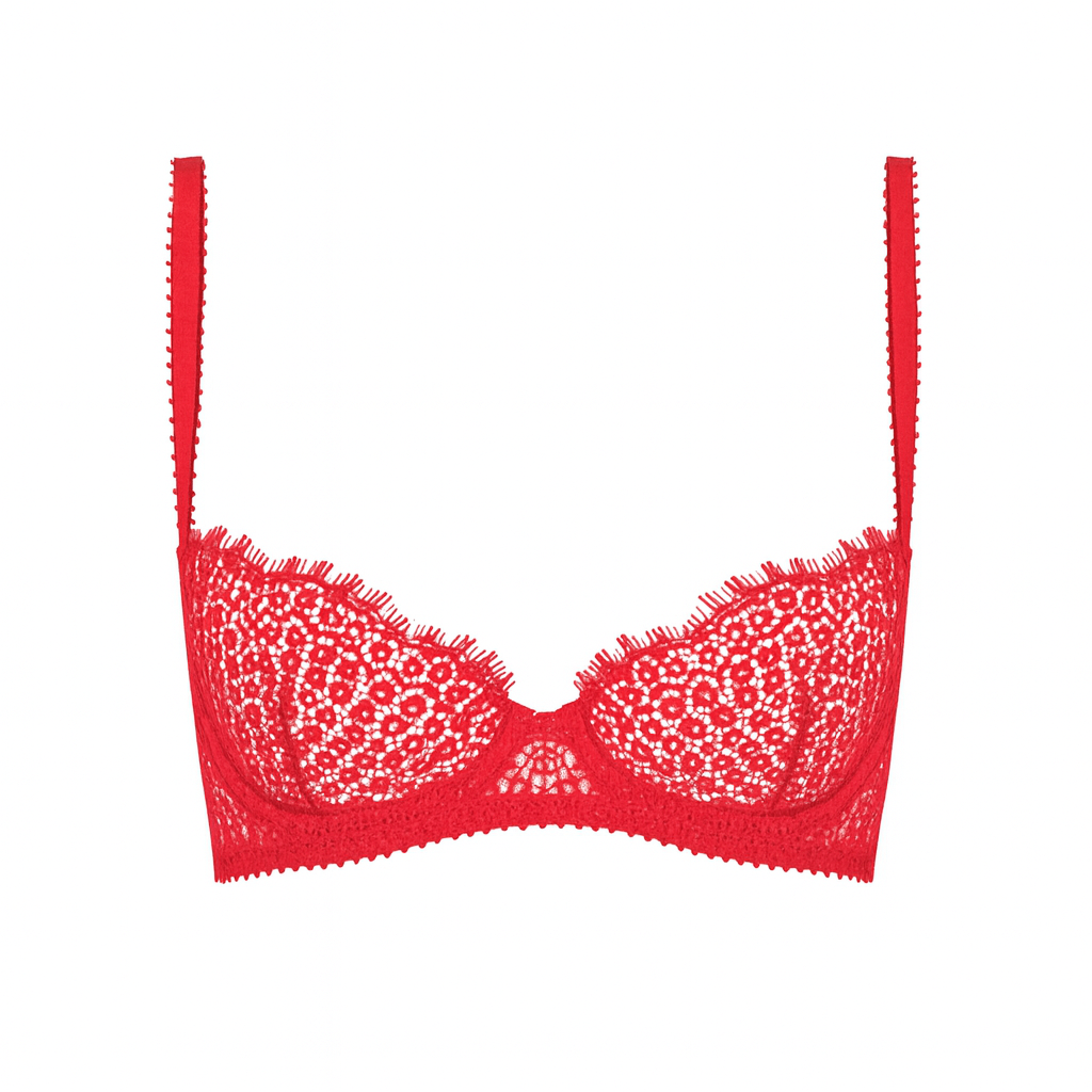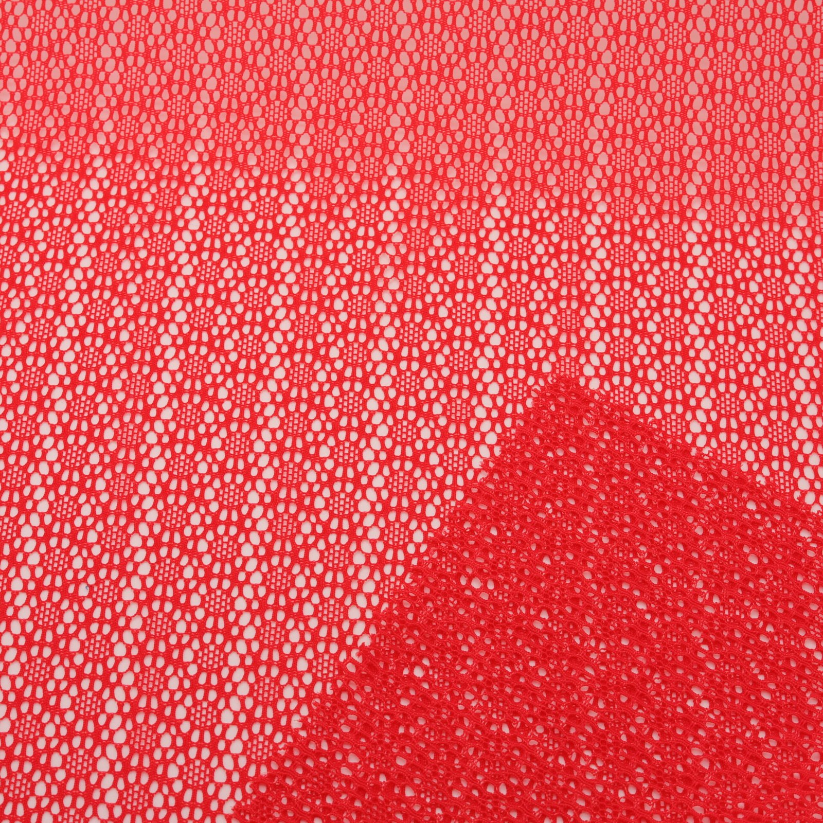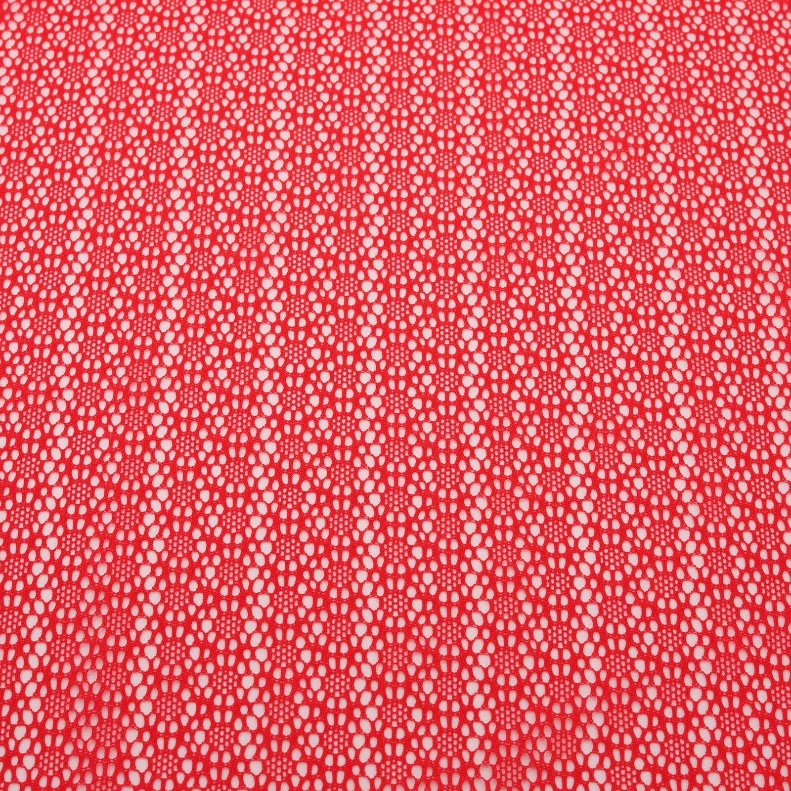 Rete jacquard rossa in nylon elastan, larga 152 cm e con un peso di 102 g/m². La sua maglia fine e traforata con un delicato motivo jacquard combina morbidezza ed elasticità, ideale per lingerie, carré velati o raffinati capi di moda.