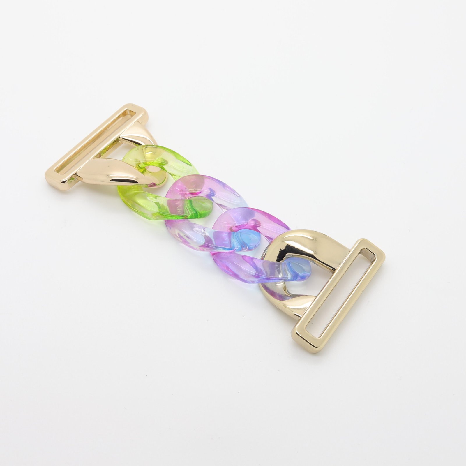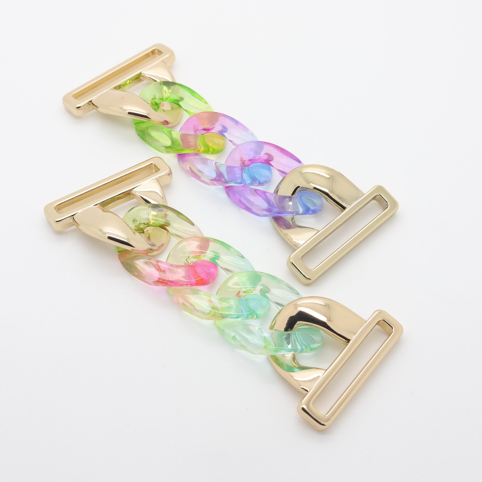 Cette chaîne connecteur multicolore en résine associe des maillons en résine colorée à des extrémités doré pour une finition bijou moderne et originale. Idéale pour les maillots de bain, bikinis et créations textiles haut de gamme, elle apporte une touche créative tout en assurant une connexion fiable et durable.