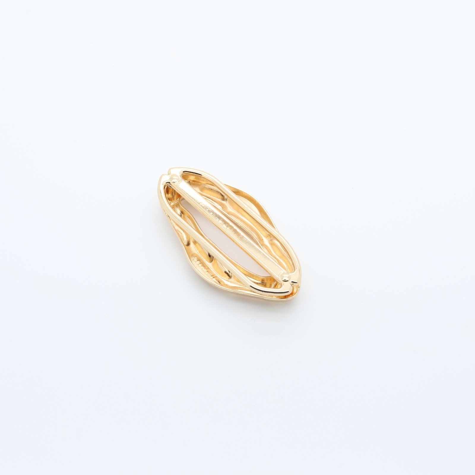 Conector de metal dourado - uma peça de montagem decorativa e funcional para fatos de banho, lingerie e vestuário drapeado. O acabamento meticuloso garante uma utilização duradoura, mesmo em ambientes marítimos.