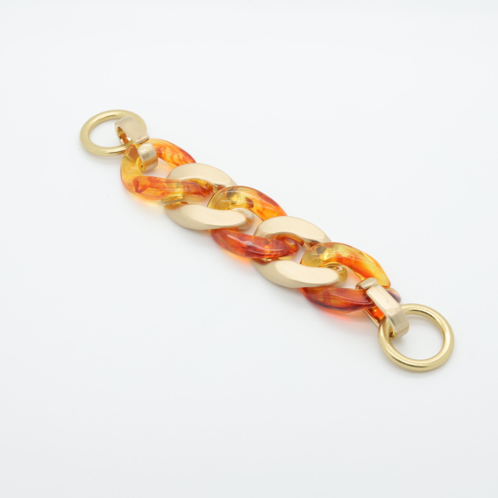 Cette chaîne décorative en résine ambre et métal doré est un élément ornemental au style moderne et raffiné. Elle apporte une finition élégante aux maillots de bain, vêtements et accessoires décoratifs.