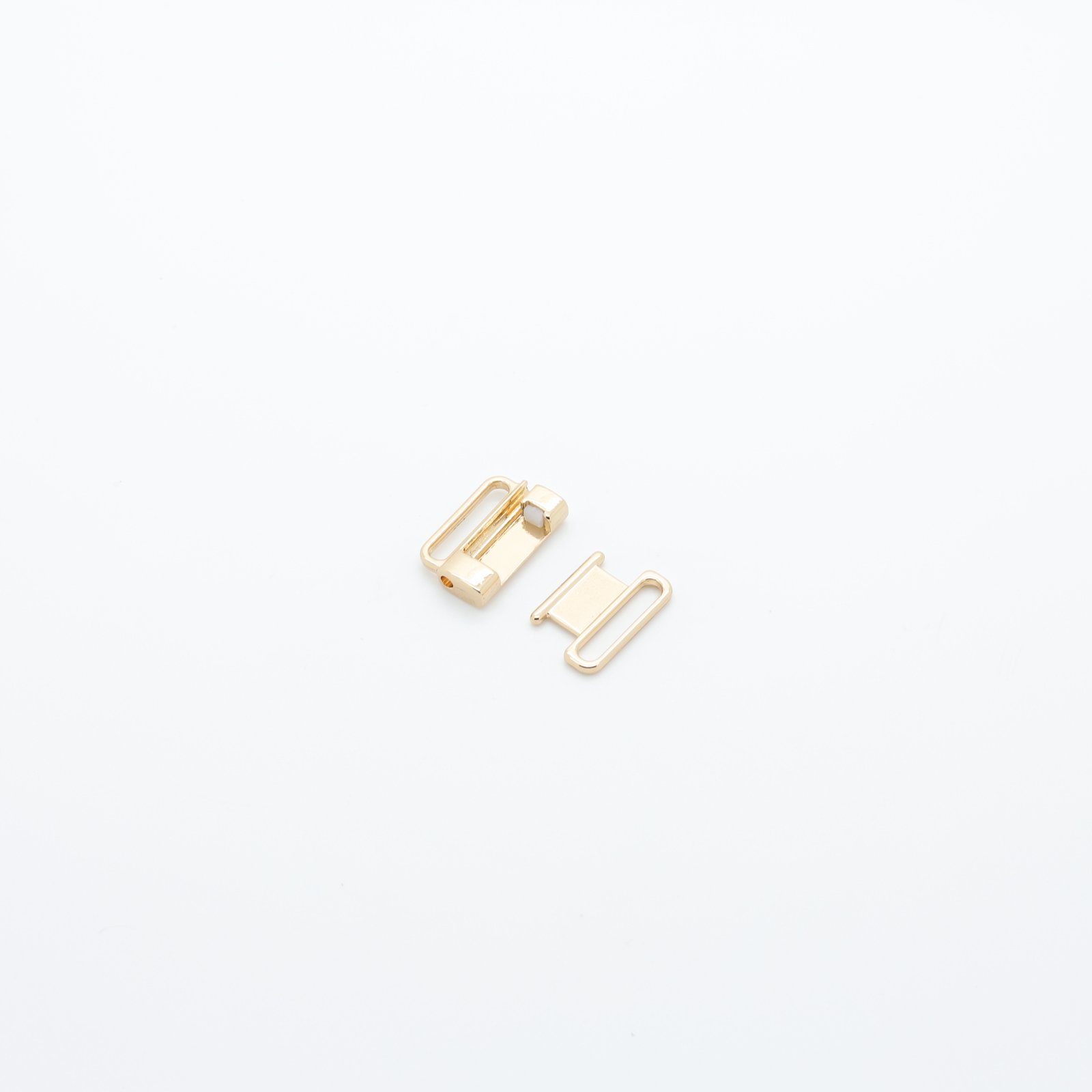 Ce fermoir métallique rectangulaire doré assure une fermeture fiable et élégante pour les créations balnéaires. Son format compact avec passants intégrés offre une finition nette et professionnelle.