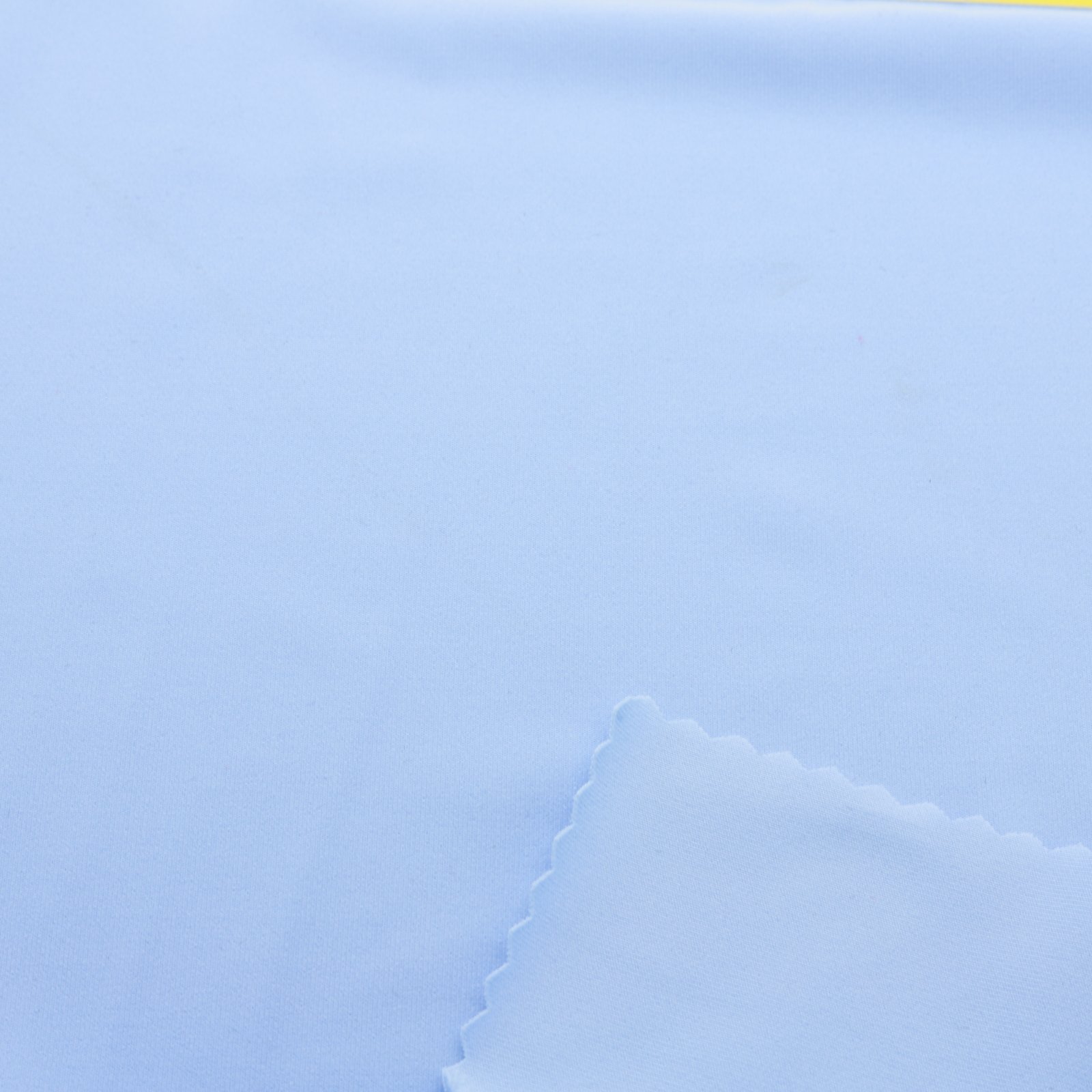 Tissu microfibre bleu extensible, et intégrant du polyester recyclé. Cette microfibre légère et fluide offre un toucher doux, une excellente élasticité et un confort optimal. Idéale pour la confection de maillots de bain, de lingerie moderne et de vêtements techniques alliant performance, durabilité et élégance.